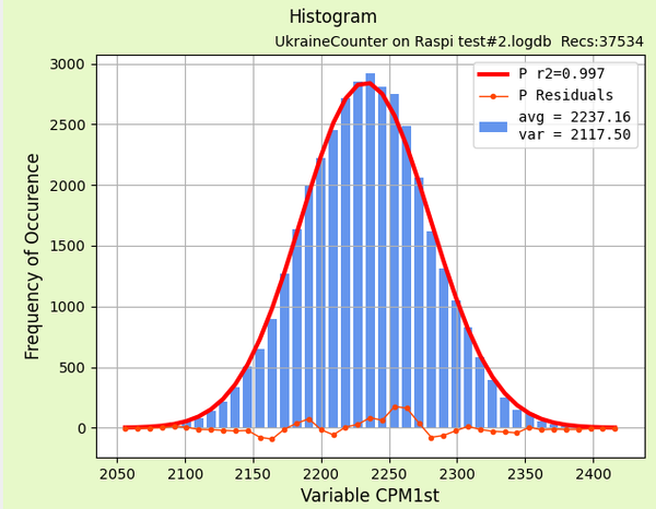 Third, the radioactive process can be described by a Poisson distribution. Human beings cannot tell whether any of the data scatter has a Poisson property. But software can tell. To my knowledge, the only one useable is my GeigerLog software. You find it here (it is open source): https://sourceforge.net/projects/geigerlog/