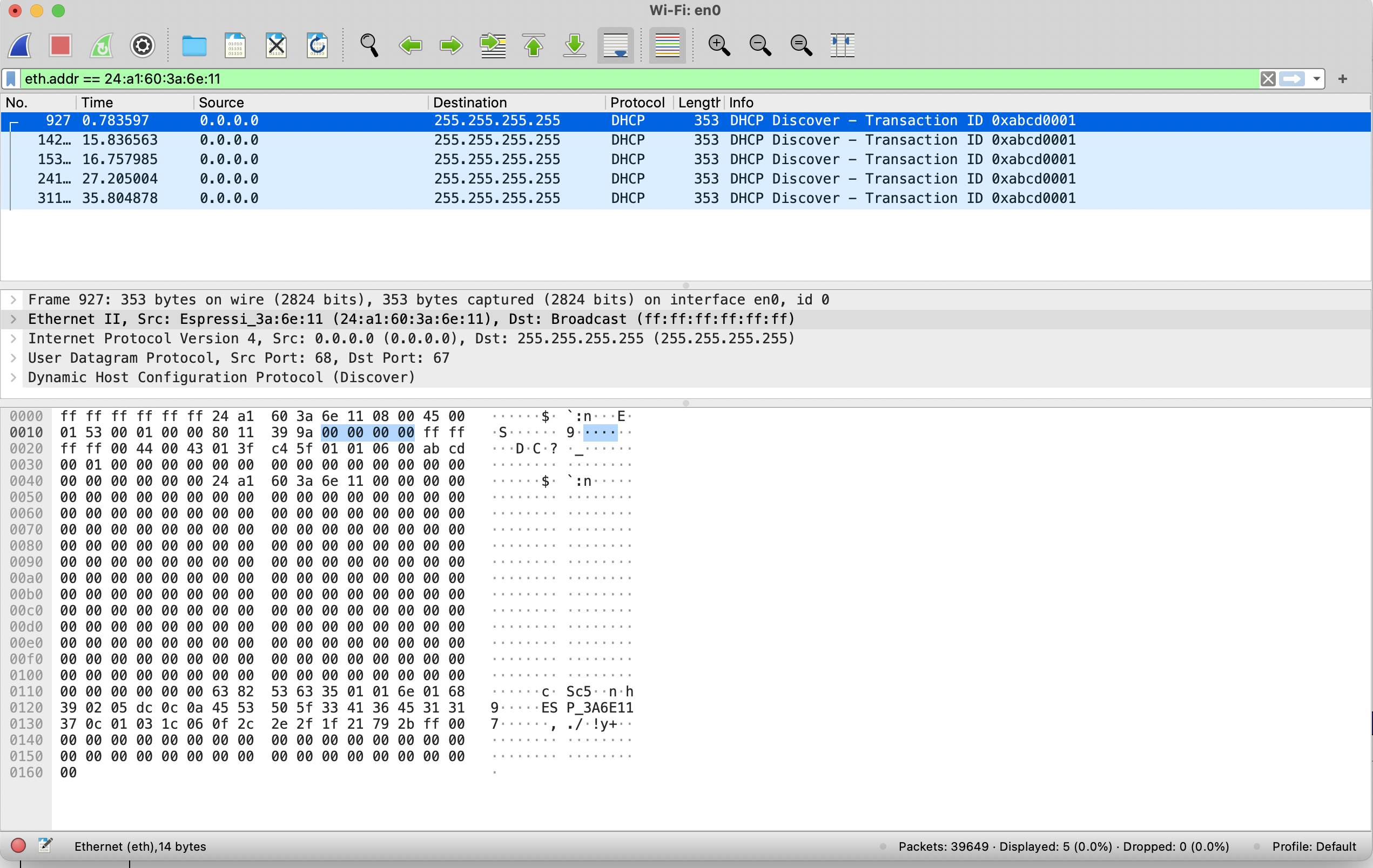 Wireshark is really powerful, but it is a beast of complexity. Upon starting I choose the interface "any", and in the green area where you have "eth.addr ==" I have simply "http". This helped me to understand what was going on with my GMC-500+.
